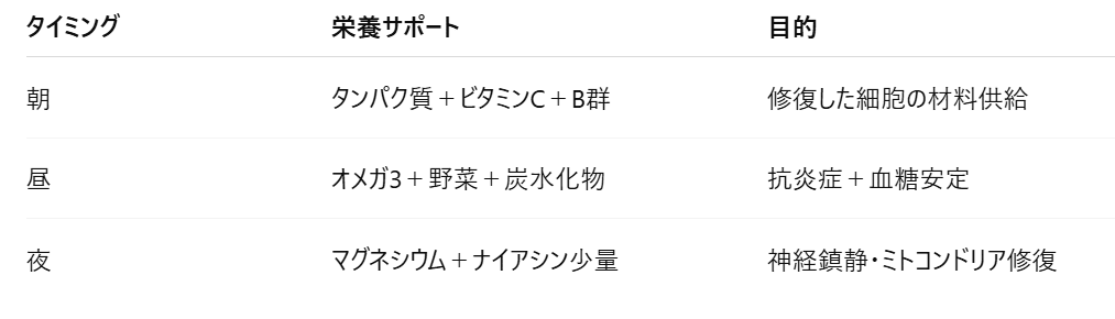 → 夜のDNA修復とNAD再生サイクルをサポート。